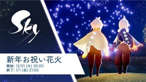 フレンドさんと一緒に、ホームで毎時5分間打ちあがる花火を楽しみながら、Skyで新年をお祝いしませんか🎇 ⏰この光のショーは日本時間で12/31(木)20:00から1/1(金)21:00まで続きます。全ての星の子どもたちが、よいお年を迎えられますように!#thatskygame 楽し…