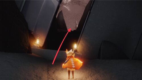 暴風域エリア長めの坂のルートを赤い矢印で紹介します。 進行に関わるアドバイスはその都度入れて行きます。 スタート地点から左端の岩へ 尖った大岩の後ろに移動する 岩が過ぎ去ったタイミングで尖った大岩の後ろに移動する。 高い段差は少し迂回して登る …